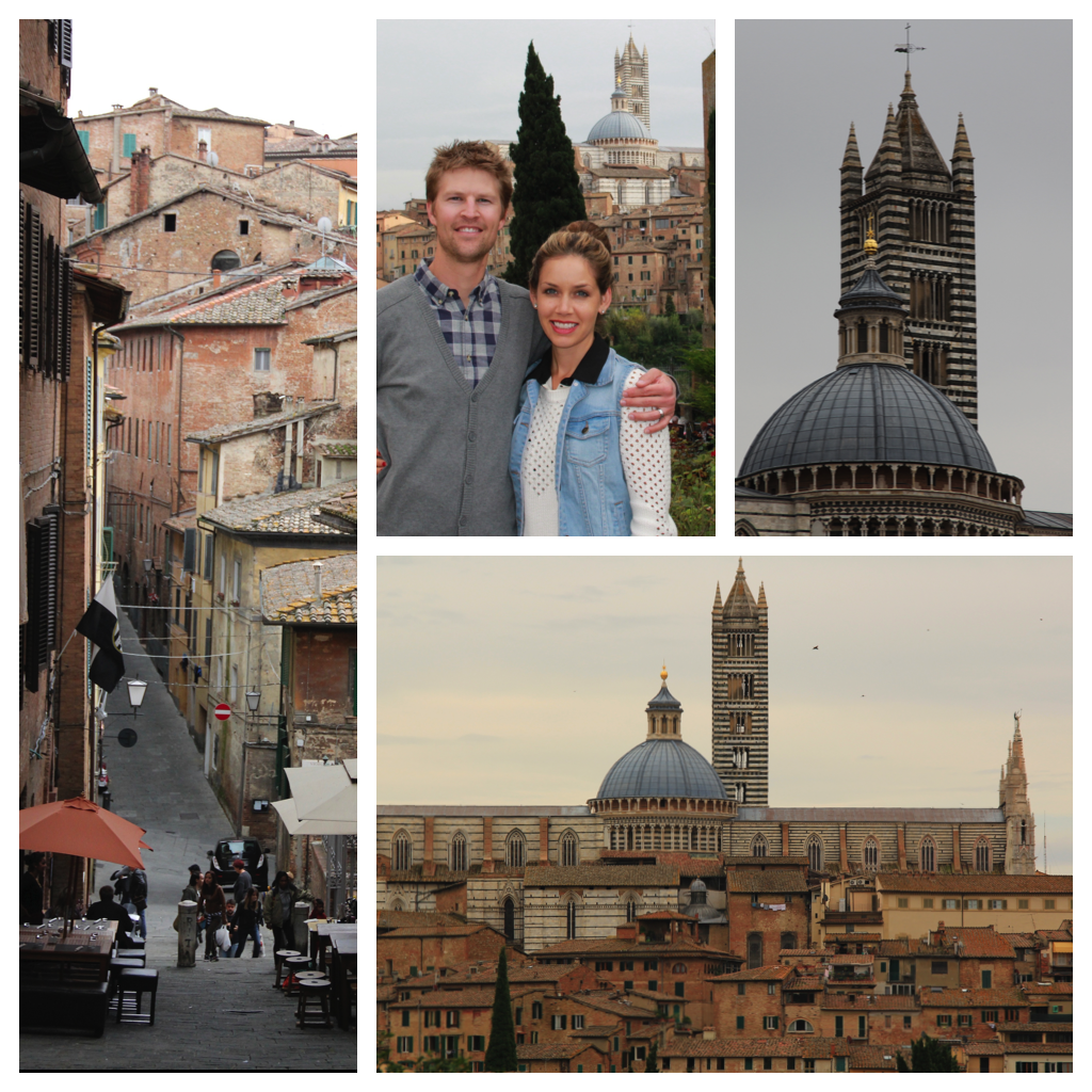 It was a mid October morning in Florence, Italy when we rented a little manual Fiat 500, grabbed a map and headed out of the city. We were ready for an adventure, a road trip through Chianti from Florence to Siena. Stopping along the way to take a million pictures, we fell in love with the tuscan hills and all it had to offer. Miles and miles of olive trees and vineyards. Picturesque, lush and enchanting were all words that came to mind as we followed the winding roads. It was non-stop laughter in the car as we tried to find an English speaking radio station and almost stalled going up one of the steep, small streets. Note to self, the Fiat 500 does not have much horse power. We stopped in a little town called Greve for some shopping and unforgettable, green, true Italian olives. Speaking of unforgettable, shortly before we had those mouth watering olives, we drove down a one way street the wrong way and had to talk our way out of a ticket from a police officer who spoke very little English. The laughter continued. But really, what’s a road trip in a foreign country without some kind of run in with the authorities, right!? We made it to Siena in the mid afternoon with a little time to wander, take pictures and shop. Like Florence, most all of the buildings in Siena are a uniformed shade of burnt orange. This makes the cityscape a beautiful, bright color in the day, casting a pink shade over the city at sunset. Being the explorers that we are, we could have spent another 3 days wandering through Siena and the small towns in Chianti tasting different wines every meal but our 6pm car rental deadline was right on our tail. Taking the less scenic route back into the city included driving on the Italian freeway. This was kind of nerve-racking in the Fiat because, if you ask me, its just a glorified golf cart. Somehow we made it back all in one piece and truly by the grace of God we made it back just in time. With all of Florence’s one way streets and maps that don’t specify which way they go, we got back JUST in time. It was one of our favorite days in Italy and one we will always remember.